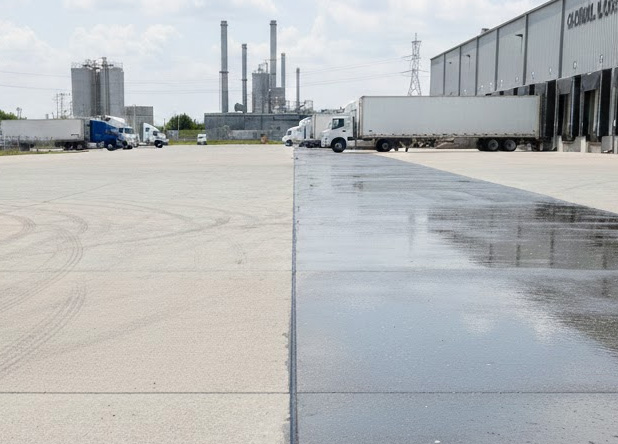 Heavy-duty concrete aprons – Our concrete pavement sealer is built to withstand trucks, machinery, and constant traffic while reducing surface wear and deterioration.